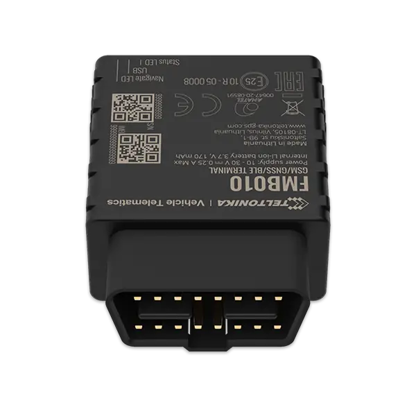 FMB010 is easy OBDII Plug and Play tracker with GNSS, GSM and Bluetooth connectivity. FMB010 is perfectly suitable for light vehicle tracking in applications like courier delivery service, car rental & leasing, insurance telematics and many other where simple integration is a must. This device supports temperature/humidity sensors, hands-free, firmware and configuration update via Bluetooth.