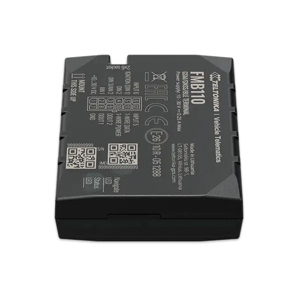 FMB110 small and professional tracker with internal high gain GSM and GNSS antennas, which is able to collect device coordinates and other useful data and transfer them via GSM network to server. This device is perfectly suitable for applications where location acquirement of remote objects is needed: fleet management, car rental companies, taxi companies, public transport, logistics companies, personal cars and so on. FMB110 can perform tasks on remote objects, such as monitoring engine status, controlling truck’s door etc.